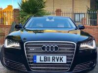 1 OWNER FROM NEW,PURCHASED FROM MAYFAIR AUDI LONDON,KEPT IN HEATED GARAGE FROM NEW,TAILOR MADE COVER,COST NEW ?130,000,ONLY 9,000 GENUINE MILES FROM NEW WITH FULL AUDI MAIN DEALER SERVICE HISTORY,MEGA SPEC AUDI A8 6.3 W12 500PS QUATTRO LWB 8 SPEED TIPTRONIC AUTO,REGISTERED 26th JULY 2011/11 REG,FINISHED IN STUNNING PHANTOM BLACK PEARL EFFECT MET WITH PERFORATED SILK BIEGE VALCONA LEATHER WITH ALCANTARA SUEDE ROOF LINING WITH PIANO BLACK INLAYS,MEGA SPEC INCLUDE THE FOLLOWING OPTIONS-PANORAMIC TWIN GLASS SLIDE/TILT SUNROOFS WITH AUTO BLINDS,INFRA RED NIGHT VISION ASSIST,ASSISTANCE PACKAGE,ADAPTIVE CRUISE CONTROL,AUDI ACTIVE CHANGE LANE ASSIST,AUDI BLIND SPOT ASSIST,AUDI PRE SENSE PLUS,AUDI BRAKE GUARD ASSIST,SPEED SIGN RECOGNITION DISPLAY,TRAFFIC SIGNS RECOGNITION,ADVANCED EXTENDED FULL LEATHER PACKAGE,PIANO BLACK EXTENDED,ALCANTARA SUEDE PACKAGE,HEATED STEERING WHEEL,HEATED WINDSCREEN,UV PANE HEAT INSULATED GLASS,DOUBLE GLAZING,REAR PRIVACY GLASS,AUDI REAR SEAT ENTERTAINMENT PACKAGE WITH INDIVIDUAL MEDIA SCREENS WITH DIGITAL TV RECEPTION/WI FI/DVD/SD...ETC,FRONT MASSAGE SEATS WITH 5 SETTING OPTIONS,FRONT VENTILATED COOL SEATS,REAR RECLINING SEAT PACKAGE WITH INDIVIDUAL RECLINING SEATS WITH MASSAGE FUNCTION AND COOL VENTILATED SEATS,REAR VANITY MIRRORS,REAR AUTO BLINDS,POWER SOFT DOOR CLOSURE,ADVANCED KEY,ADVANCED HANDS FREE BOOT ENTRY,ADVANCED AUTO FOLDING DIMMING HEATED DOOR MIRRORS,ADVANCED CAMERA PARK ASSIST,19 inch ALLOYS,ELECTRIC STEERING COLUMN,ADVANCED ALL LED HEADLIGHTS WITH AUTO HIGH BEAM ASSIST AND DYNAMIC CORNERING,AUDI DRIVE SELECT WITH ADAPTIVE AIR SUSPENSION,AMBIENT LED LIGHTING,HDD NAV MEDIA PACKAGE,AUDI PRIVACY HANDSET PHONE,ADVANCED BLUETOOTH,FINGER PAD & VOICE RECOGNITION,ON LINE GOOGLE EARTH,WI FI,TV,DVD,SD,CD LOADER,DAB,BOSE,ELECTRIC HEATED MEMORY SEATS,4 ZONE CLIMATE,AIR CON,ESP,ISOFIX SEATS,TRACKER MONITOR,AUDI ALARM IMMOBILISER...ETC TOO MUCH TO LIST! A GENUINE STUNNING LATE 2011 MEGA SPEC AUDI A8 6.3 W12 QUATTRO LWB WITH ONLY 9,000 MILES AND 1 OWNER FROM NEW,STUNNING COLOUR COMBINATION,MAGNIFICENT THROUGHOUT,P/X,FINANCE,WARRANTY